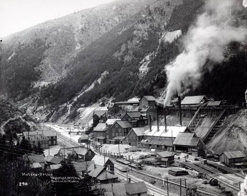 The San Francisco Mine was located in Frisco in March of 1884 and by 1889 the Gem and Frisco townsite boosted a post office, telephone office, general store, two saloons, and a train station. In 1890 the San Francisco Mine was sold to a group of investors from Helena, Montana, and the name of the mine was changed to the Helena and Frisco Mining Company. At the time the Frisco mine had the largest mill in the Coeur d’Alene Mining District. The manager of the mine, Aulbach Esler is said to be directly responsible for the Union uprising in 1892.